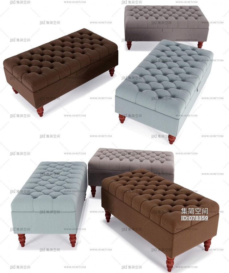 美式沙发凳 3d模型下载 [模型ID:78359]