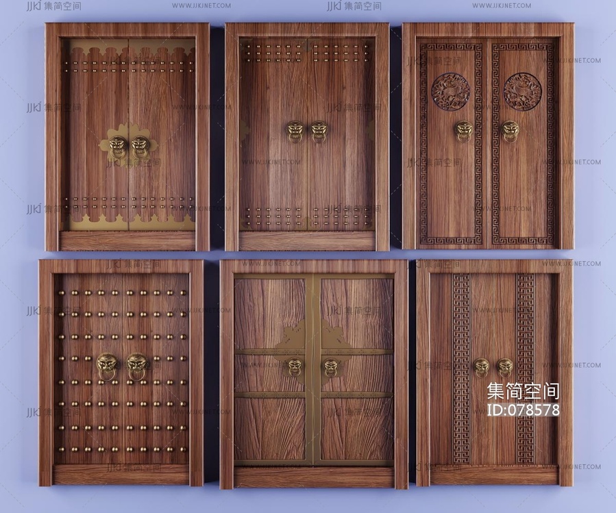 新中式单开门入户门_子母防盗门3D模型3d模型下载