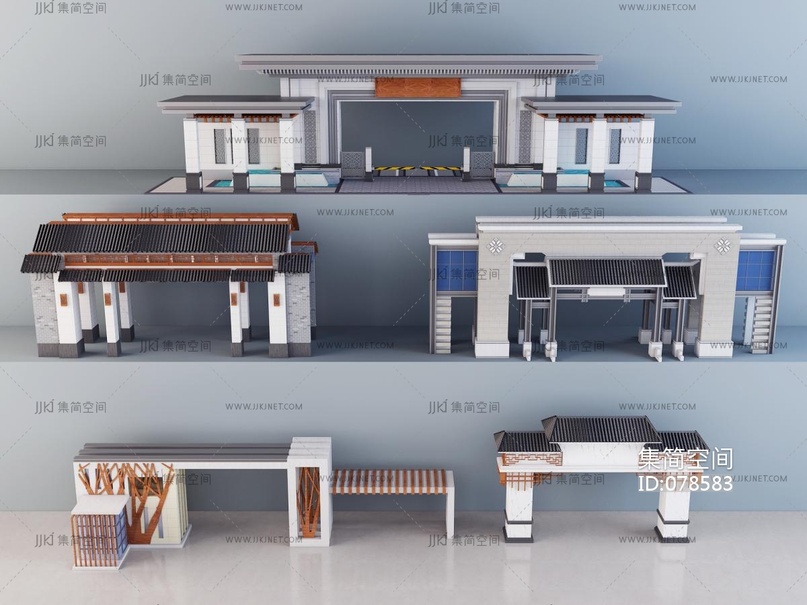 式古建别墅建筑入户门面,门头3d模型3d模型下载