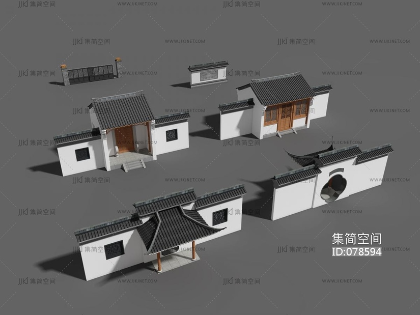 式古建别墅建筑入户门面,门头3d模型3d模型下载