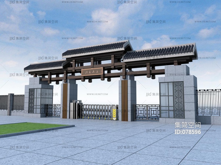 新中式山庄度假村入口大门门楼门洞 3d模型下载 [模型ID:78596]