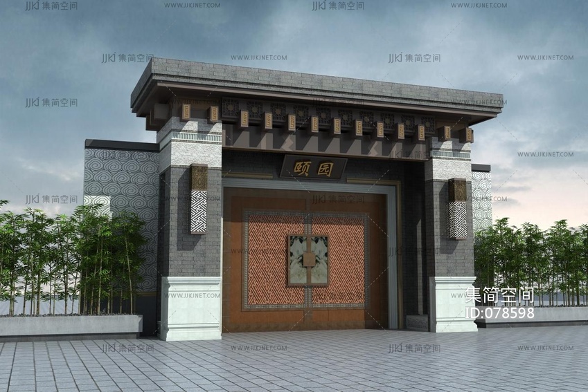 新中式古典入户入口大门 3d模型下载 [模型ID:78598]
