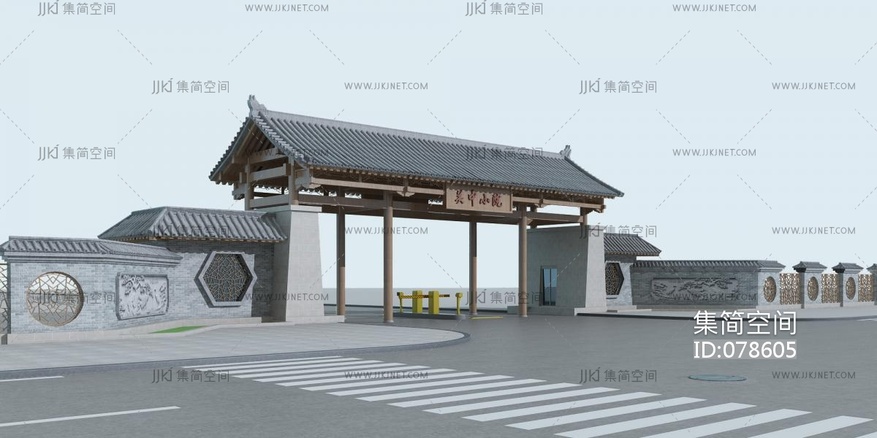 式庭院门入户门门头屋檐3,灯笼大门,抱鼓,d模型3d模型下载