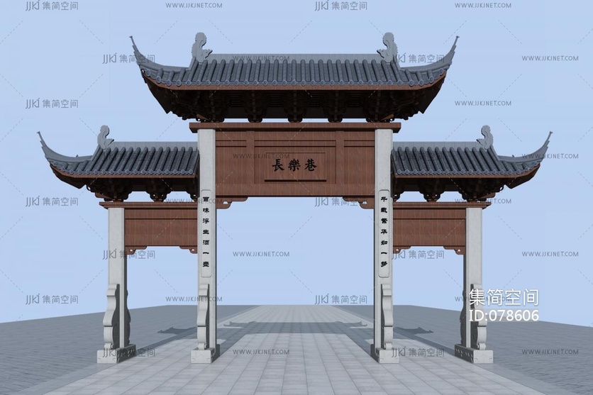 式庭院门入户门门头屋檐3,灯笼大门,抱鼓,d模型3d模型下载