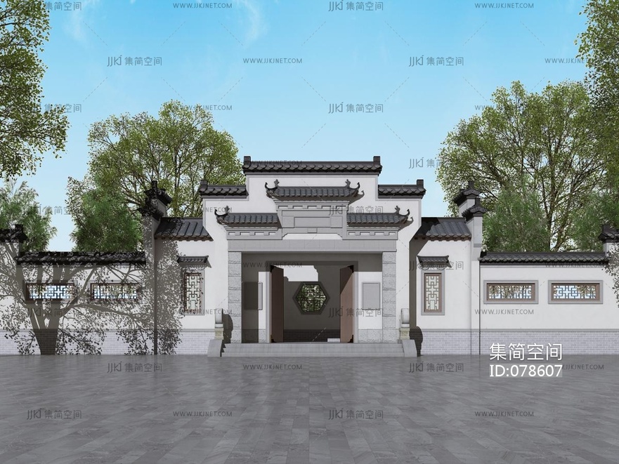 式古建别墅建筑入户门面,门头3d模型3d模型下载
