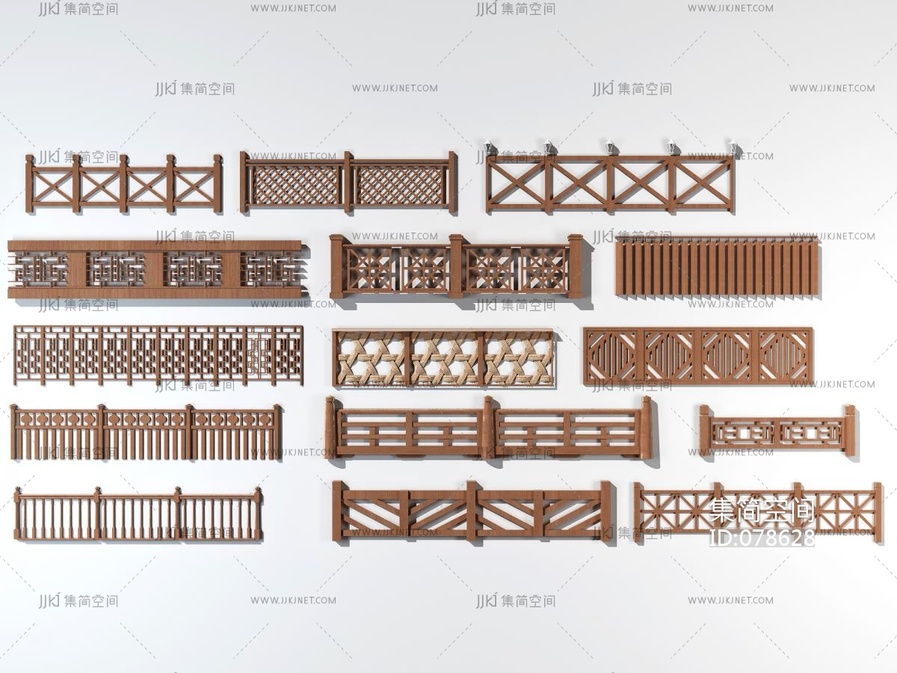 中式木蓝港围栏新中式农村牧场护栏 3d模型下载 [模型ID:78628]