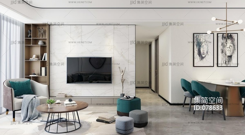 现代客餐厅墩子 3d模型下载 [模型ID:78633]