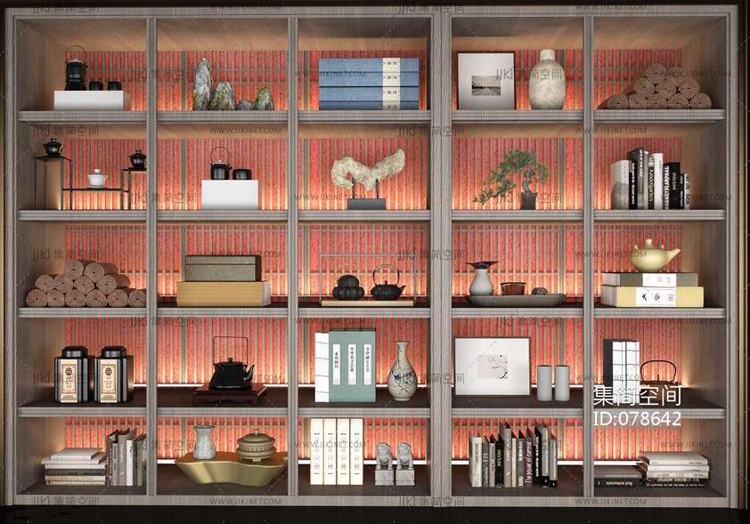 新中式书柜饰品书柜摆件 3d模型下载 [模型ID:78642]