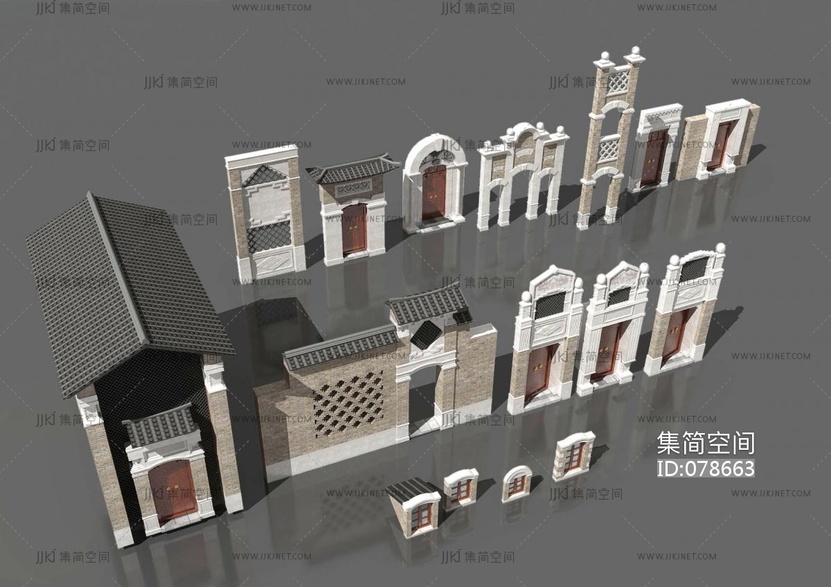 式古建别墅建筑入户门面,门头3d模型3d模型下载