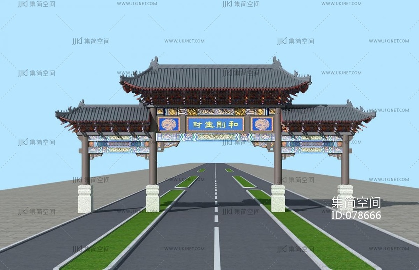 中式庭院大门门头3d模型下载