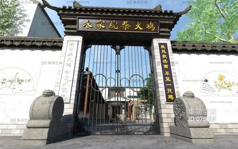 中式古建筑,门头大门 3d模型下载 [模型ID:78671]