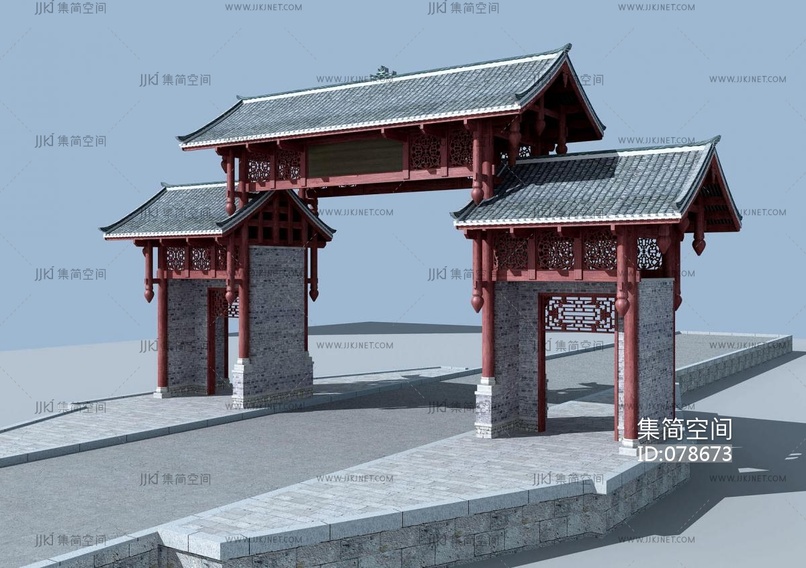 中式古建筑 大门门楼, 3d模型下载 [模型ID:78673]