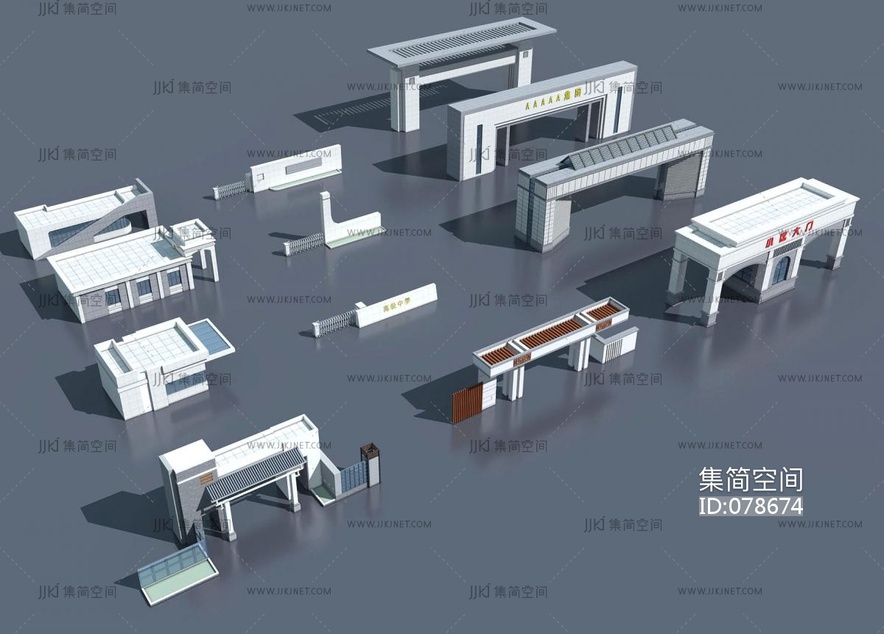 学校入口大门3d模型下载