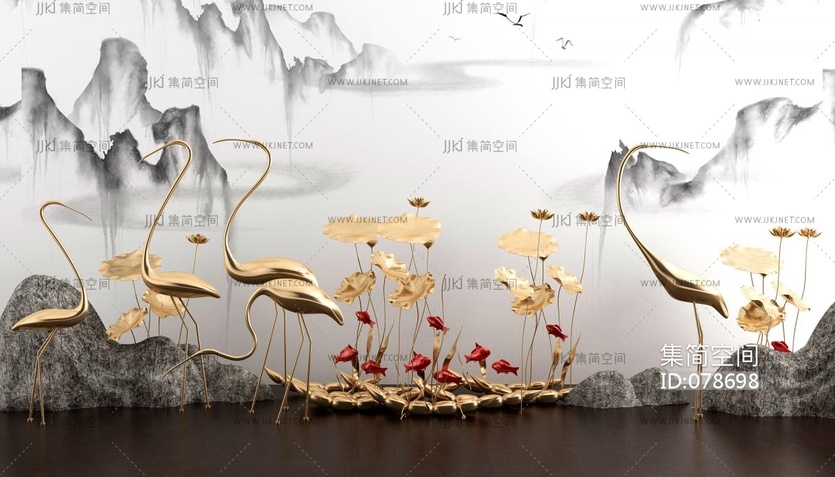 仙鹤景观小品雕塑铜雕 3d模型下载 [模型ID:78698]