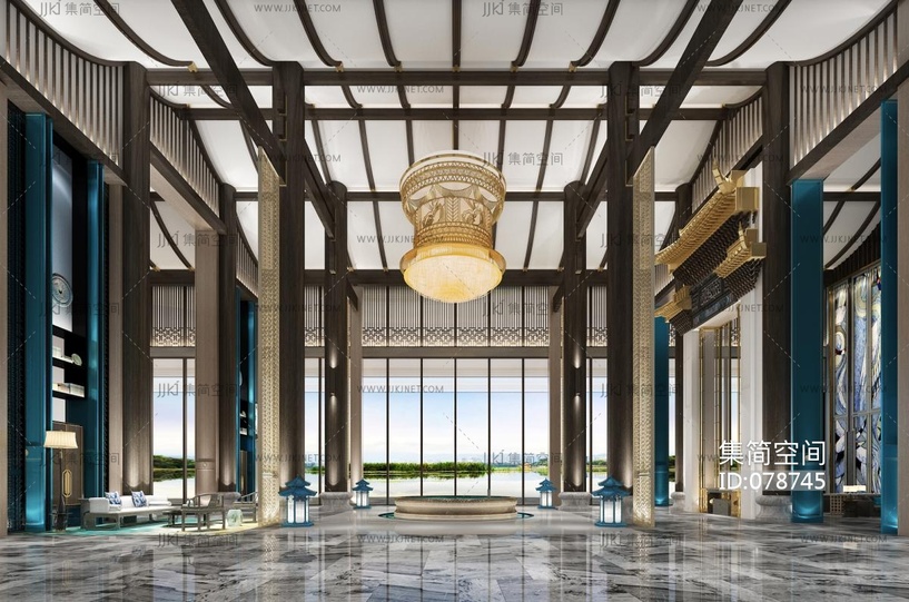 中式酒店会所大堂 3d模型下载 [模型ID:78745]