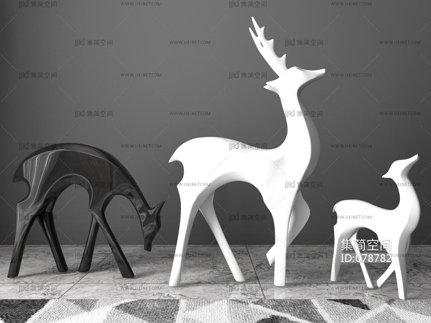 梅花鹿摆件,雕塑艺术品 3d模型下载 [模型ID:78782]