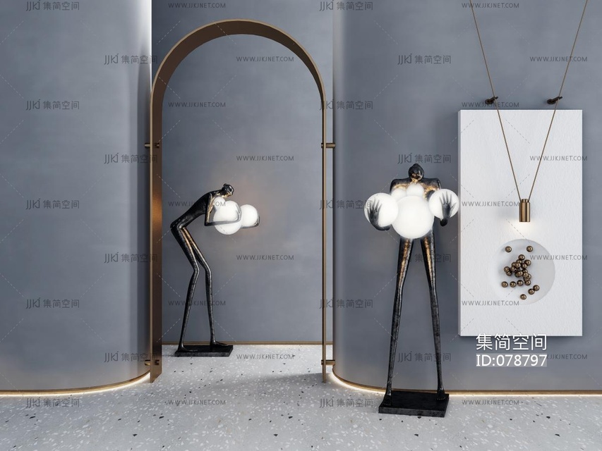 金属小人雕塑雕像落地灯 3d模型下载 [模型ID:78797]
