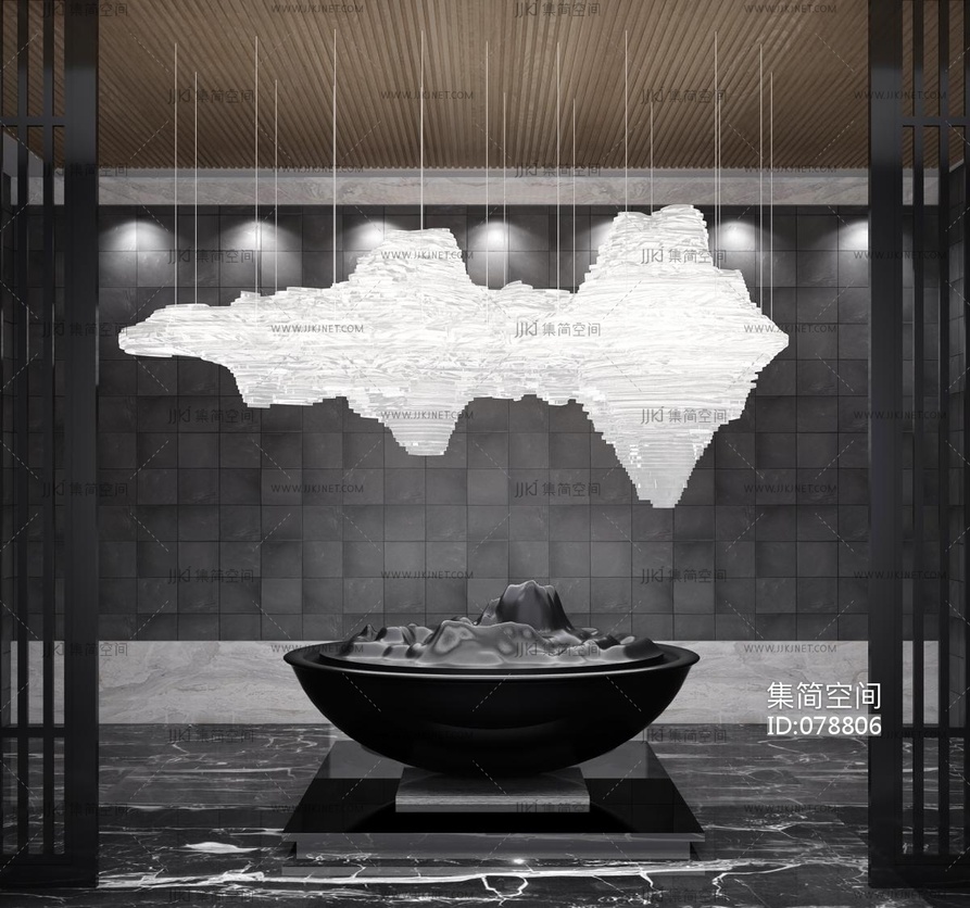 大型水晶吊灯雕塑水景摆台摆件 3d模型下载 [模型ID:78806]