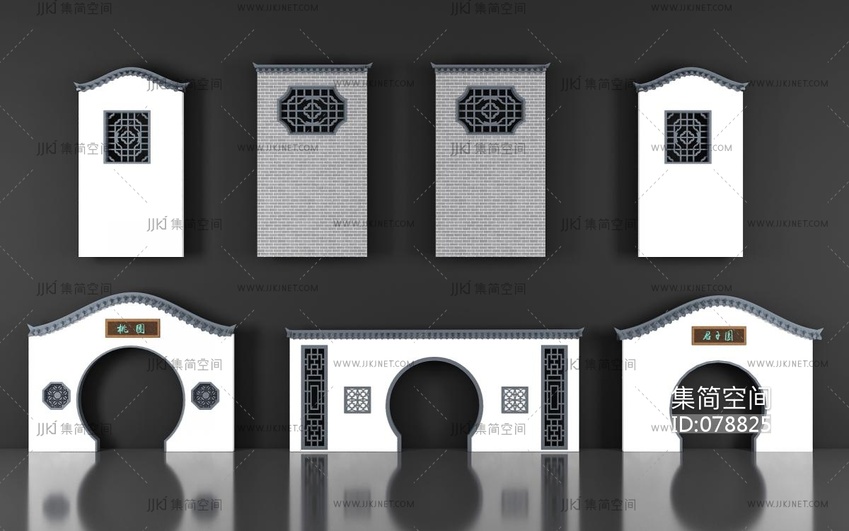新中式围墙,院墙,月亮门, 3d模型下载 [模型ID:78825]