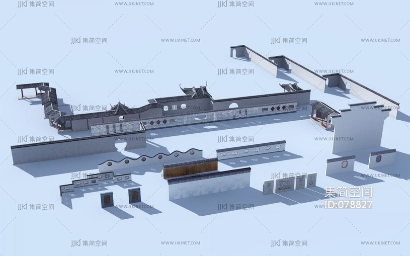 中式徽派建筑围墙 3d模型下载 [模型ID:78827]