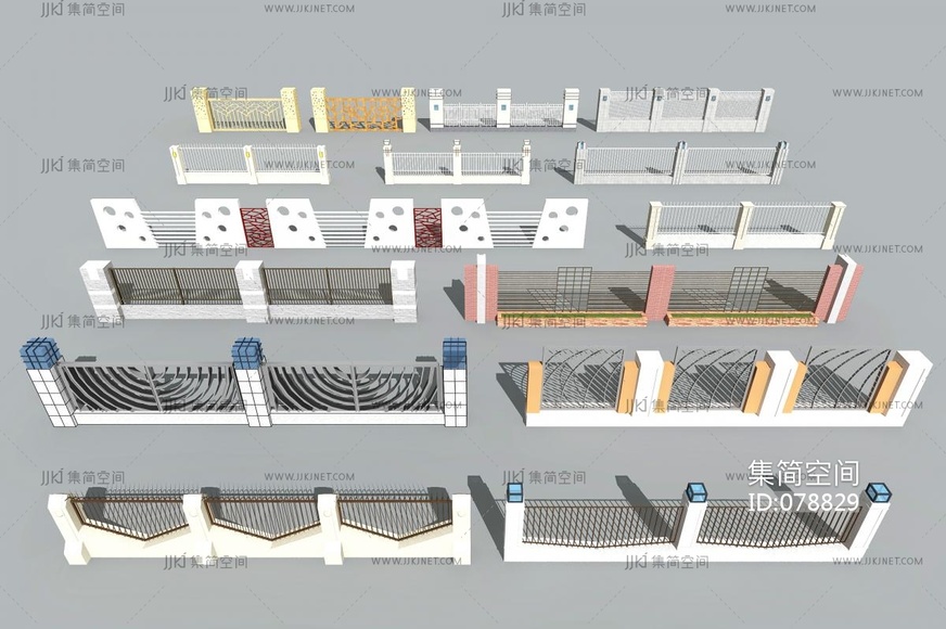 欧式铁艺栏杆护栏围栏,院墙围墙 3d模型下载 [模型ID:78829]