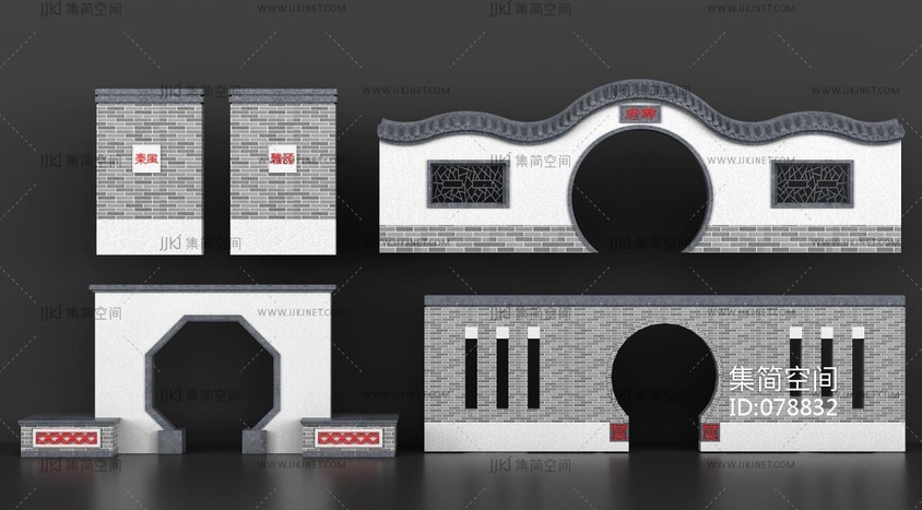 中式乡村矮墙_青砖墙_民居院墙3D模型3d模型下载