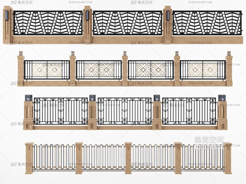 欧式新中式铁艺围栏护栏 3d模型下载 [模型ID:78838]