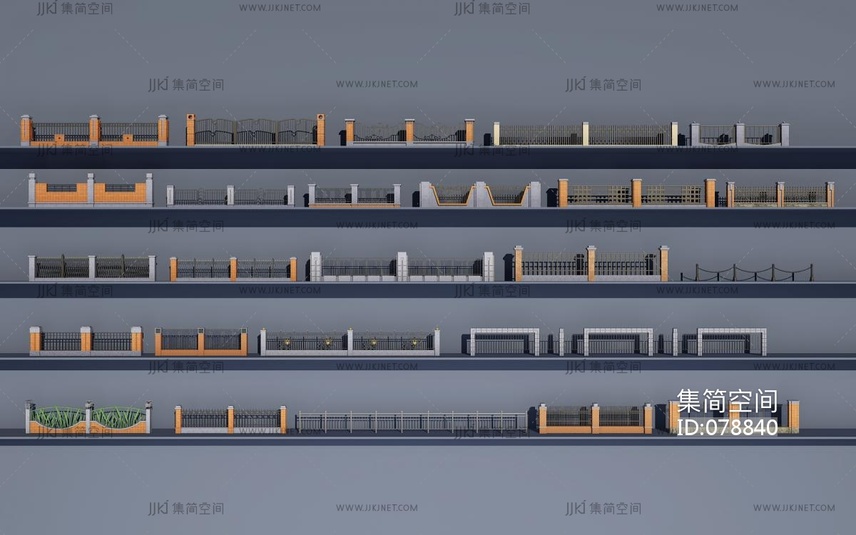 新中式铁艺围栏护栏 3d模型下载 [模型ID:78840]