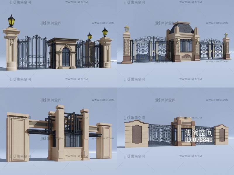 小区园区入口铁艺大门 3d模型下载 [模型ID:78849]