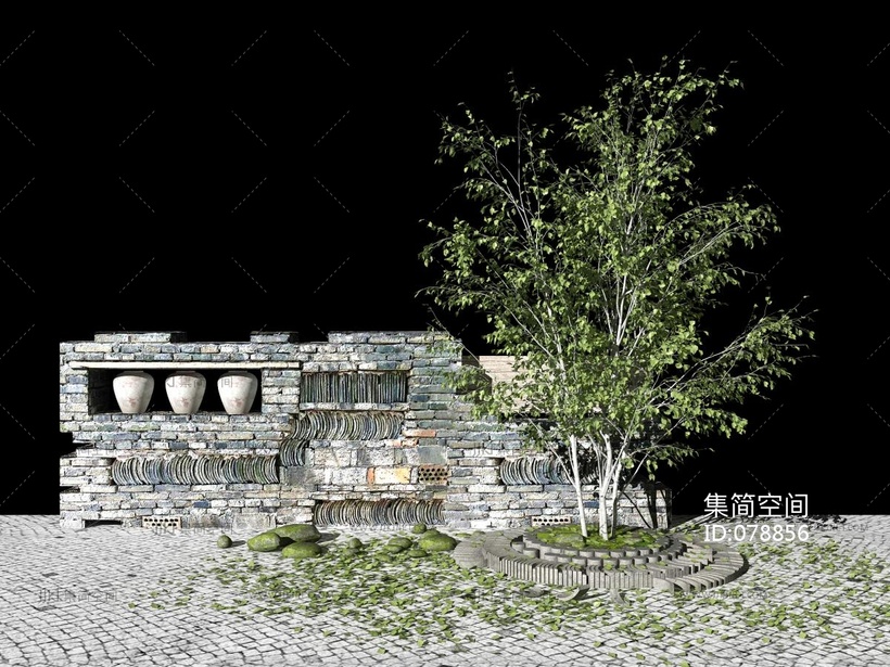 景观树残破院墙围墙 3d模型下载 [模型ID:78856]