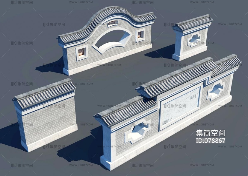 中式古建院墙围墙, 3d模型下载 [模型ID:78867]
