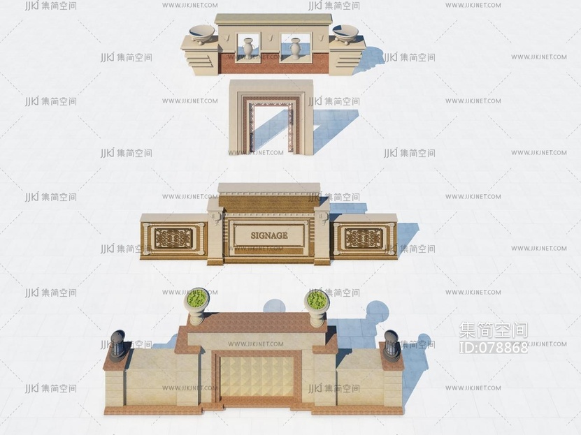 欧式景观文化围墙 3d模型下载 [模型ID:78868]