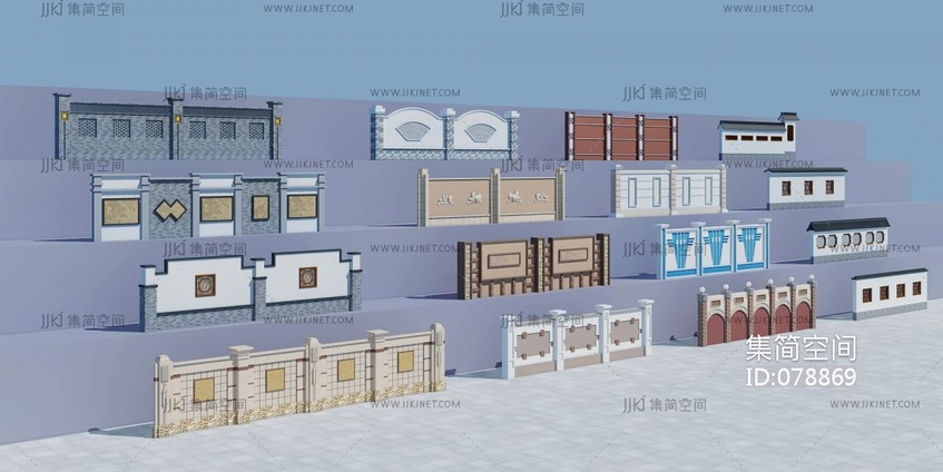 中式欧式文化墙 3d模型下载 [模型ID:78869]