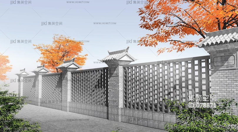 中式院墙围墙 3d模型下载 [模型ID:78871]