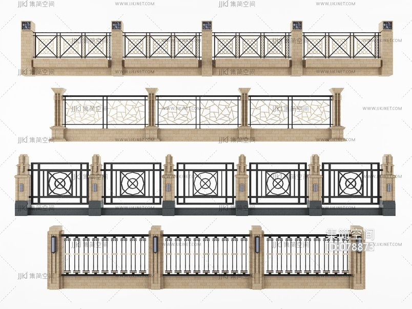 欧式铁艺栏杆护栏围墙院墙 3d模型下载 [模型ID:78873]
