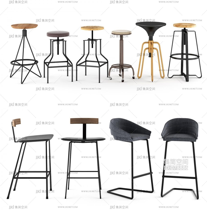 工业LOFT吧椅,吧凳 3d模型下载 [模型ID:78886]