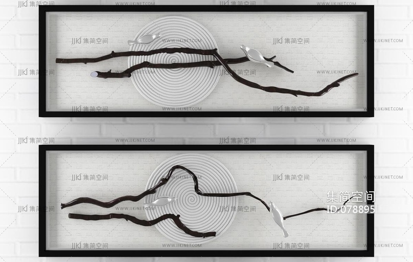 [中式] 现代中式干枝挂画组合 3d模型下载 [模型ID:78895]