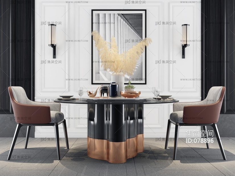 欧式美式圆桌餐椅椅子边桌3d模型3d模型下载