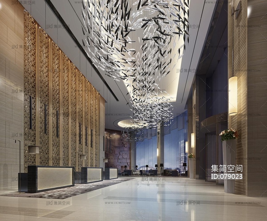 新中式酒店会所大厅, 3d模型下载 [模型ID:79023]