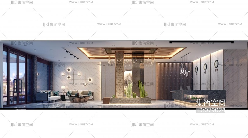 新中式会所大厅大堂前台服务台接待区门厅 3d模型下载 [模型ID:79024]