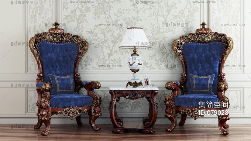 法式古典巴洛克风格雕花单人沙发 3d模型下载 [模型ID:79028]