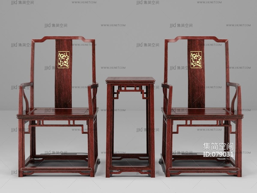 中式古典实木红木椅子官帽椅圈椅3d模型下载