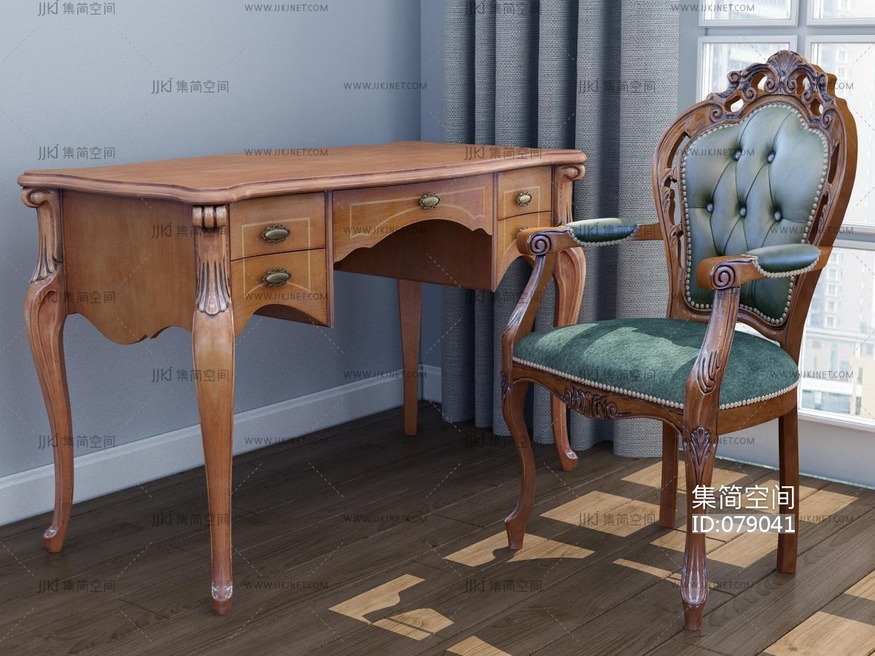 美式欧式古典实木雕花书桌 3d模型下载 [模型ID:79041]