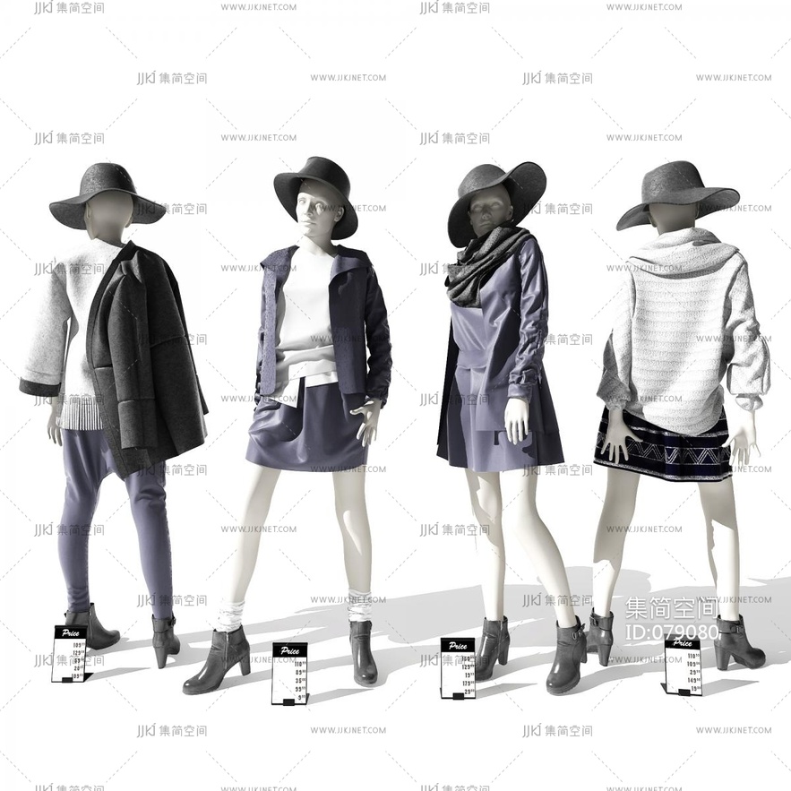 04-现代模特_服饰_鞋帽_服装_女装_橱窗_衣服_帽子_外衣_鞋子_代服装店3D模型vrrr3d模型下载