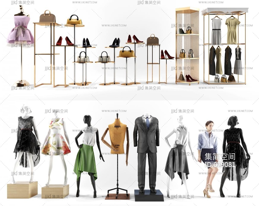 04-现代模特_服饰_鞋帽_服装_女装_橱窗_衣服_帽子_外衣_鞋子_代服装店3D模型vrrr3d模型下载