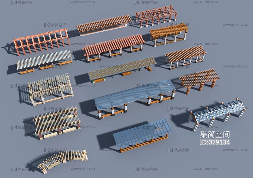新中式木廊架,凉亭 3d模型下载 [模型ID:79134]