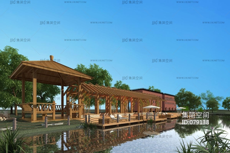 中式公园景观湖景,凉亭 3d模型下载 [模型ID:79138]
