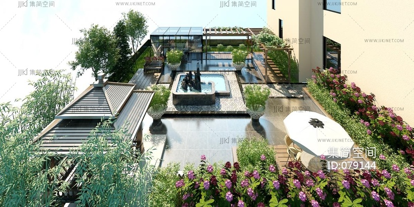 现代室外花园凉亭木廊架 3d模型下载 [模型ID:79144]