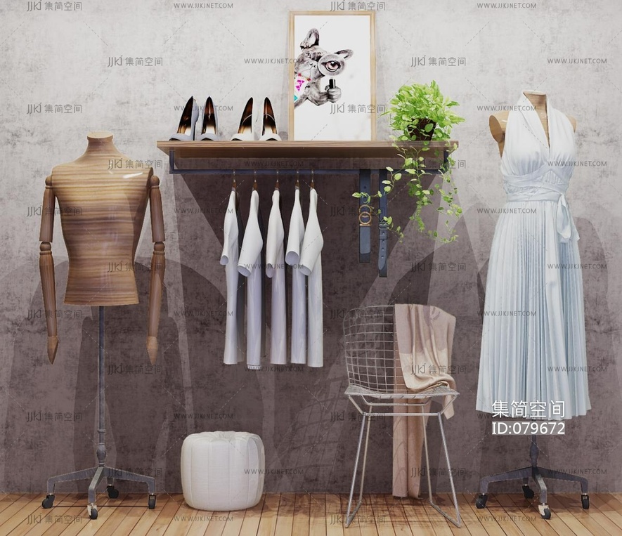 工业LOFT衣架,展台 3d模型下载 [模型ID:79672]