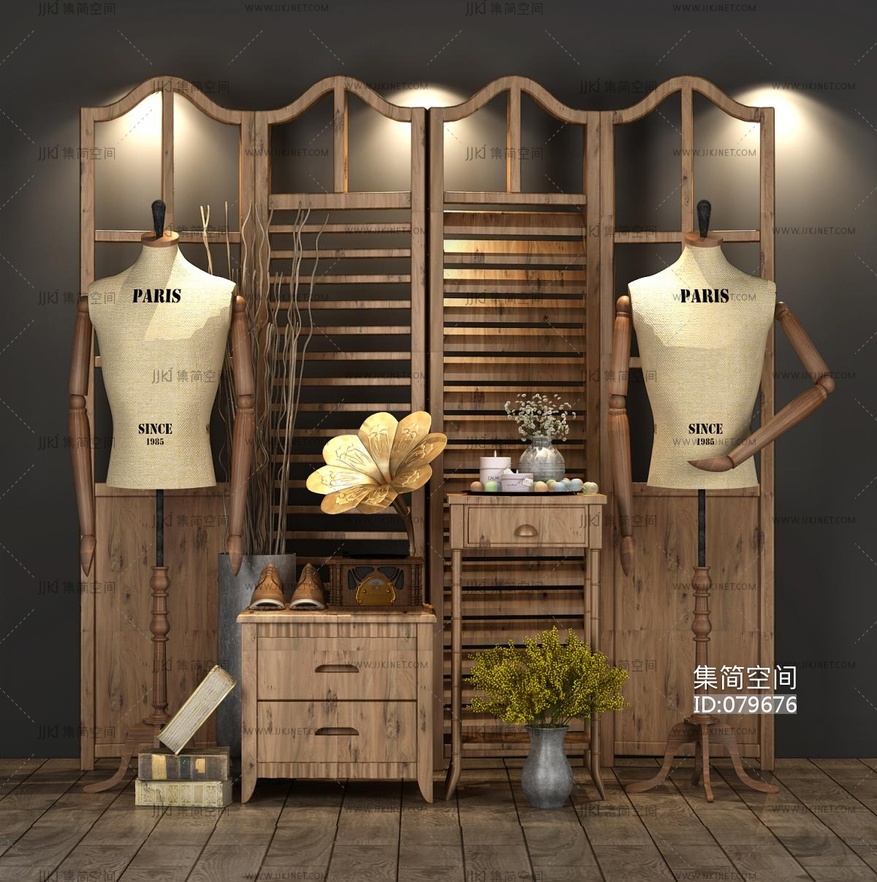 美式半身模特,中式屏风 3d模型下载 [模型ID:79676]